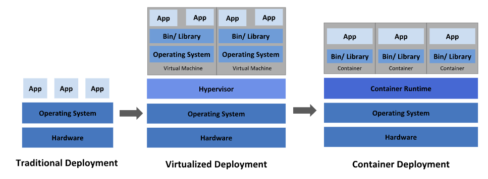 반면 컨테이너는 도커 엔진과 같은 컨테이너 런타임 위에서 동작한다.