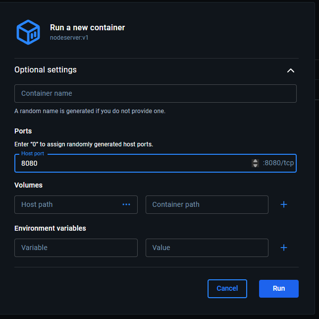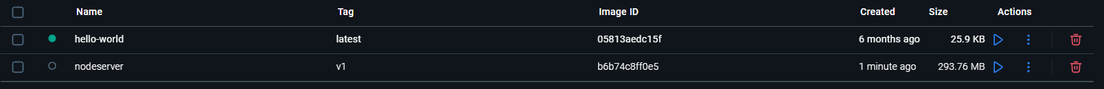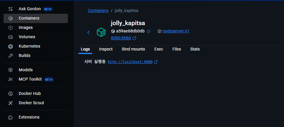 Docker Desktop을 열어보면 nodeserver:v1 이미지가 목록에 나타난다.