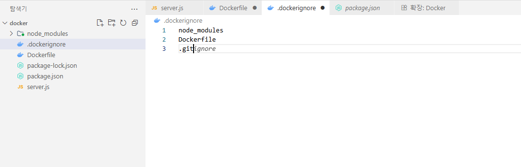 복사에서 제외할 파일은 .dockerignore 파일로 지정할 수 있다.