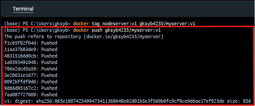 docker tag nodeserver:v1 내아이디/레포지토리명:태그명