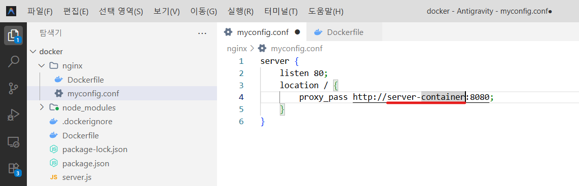- nginx 컨테이너 : 80번 포트에서 실행 중