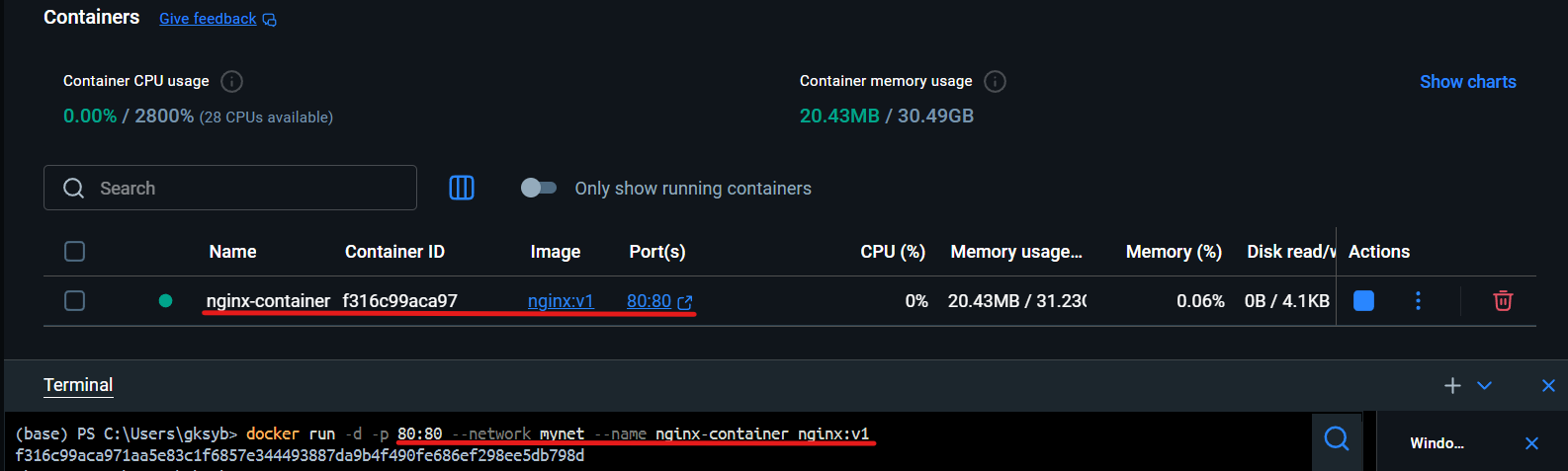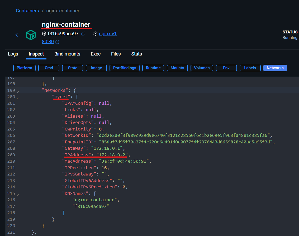 docker run -d -p 80:80 --network mynet --name nginx-container nginx:v1