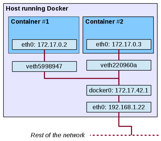 즉, 컨테이너들을 같은 사설 네트워크 안에 있는 컴퓨터들처럼 만들어주는 것이다.