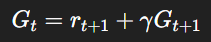 여기서 Gt는 리턴(Return), 즉 미래 보상의 누적 합이다.