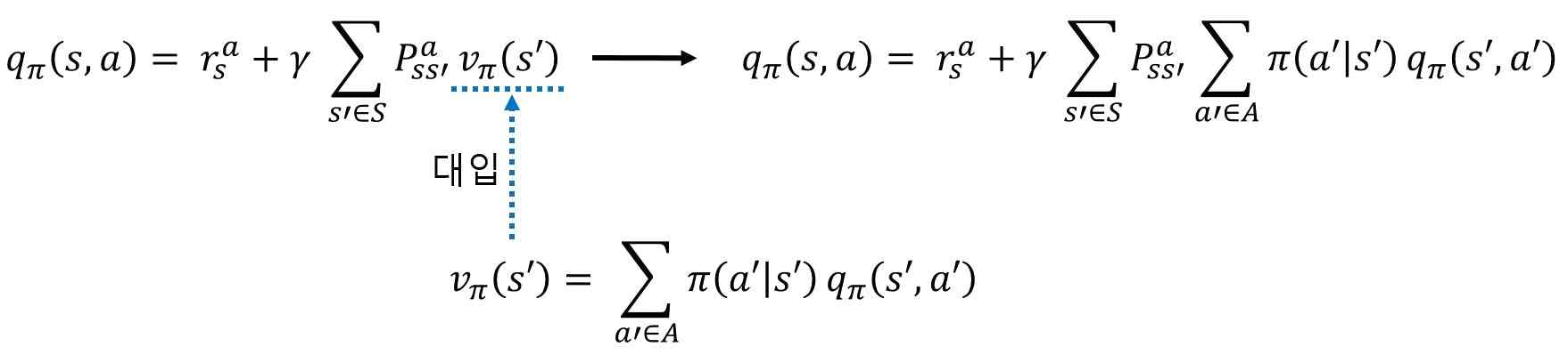이제 반대로 v*를 이용해 q*를 구하는 수식이다.