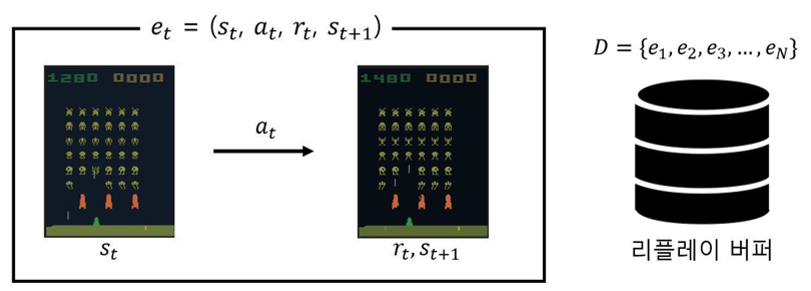 또한 DQN은 off-policy 알고리즘이기 때문에 과거 정책으로 모은 데이터도 사용할 수 있다.