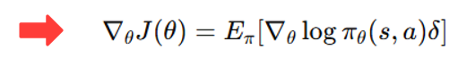 - 𝛿는 Critic이 계산한 평가 값