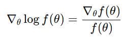 여기서 핵심은 다음 관계이다. (logf(θ)를 미분하면 1/f(θ)이 됨을 사용)
