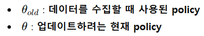 현재 policy를 θ_{old}라고 하고, 업데이트된 policy를 θ라고 하자.