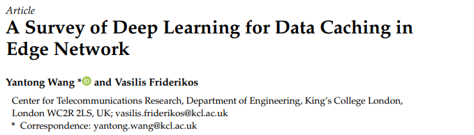 참고논문 : A Survey of Deep Learning for Data Caching in Edge Network