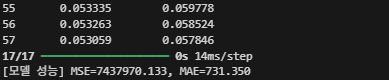 이런 경우에도 최고 성능을 보이는 Epoch는 41에 머무르며, MAE값도 개선되지 않는다.