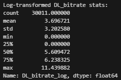 첫 번재 해결책. 따라서 bitrate와 관련된 데이터를 log1p transform을 통해 Scaling을 진행했다.