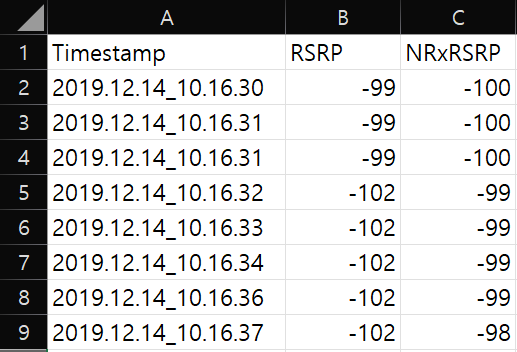 Test 데이터로 RSRP의 변화가 전체적으로 잘 확인되는 500초간의 TimeStamp를 선정하였다.
