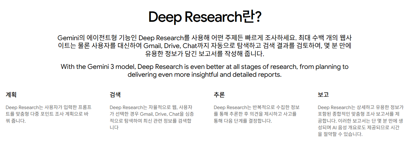 Gemini Deep Research에서는 Planning이 조사 파이프라인 전체를 규정하는 상위 구조로 확장된다.